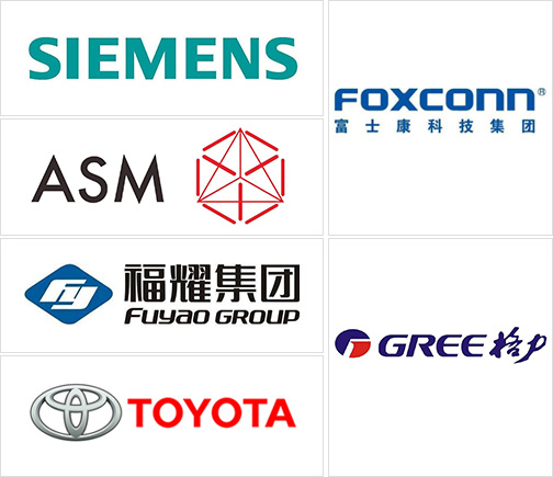 眾多國內外知名企業見證:富士康、格力、美的、赫比、福耀、東風、豐田、中國一汽,住友,松下,格蘭仕、西門子、廣東宏遠等。
